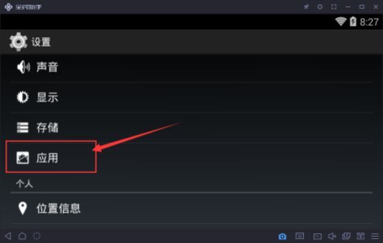 3、在“安卓设置”界面打开“应用”,在“应用”界面就可以看到我们安装的所有应用了;