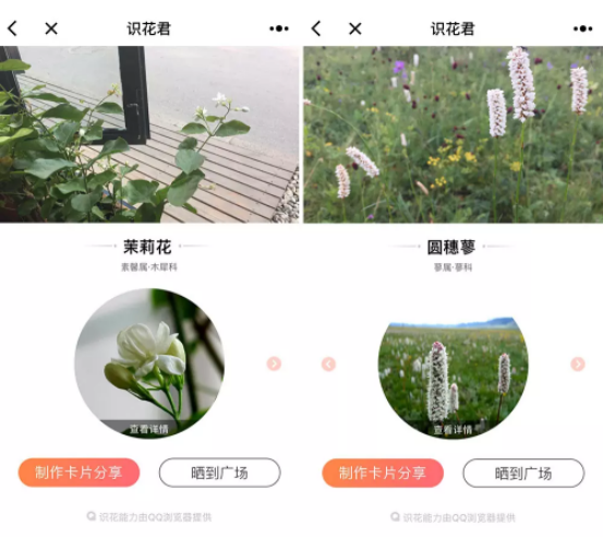 遇到不知名的花花草草,掏出手机,用「识花君」小程序扫一扫,立刻就知道你面前这个小家伙姓甚名谁啦。
