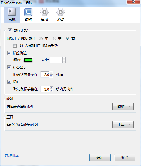 4、打开后界面如下图所示,在“常规”界面是设置鼠标手势的,比如是需要点击左键还是右键或者中间,还有时间间隔等;