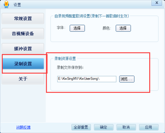 3、接着在“设置”界面的“录制设置”中就可以看到录制文件保存的位置了,如下图所示: