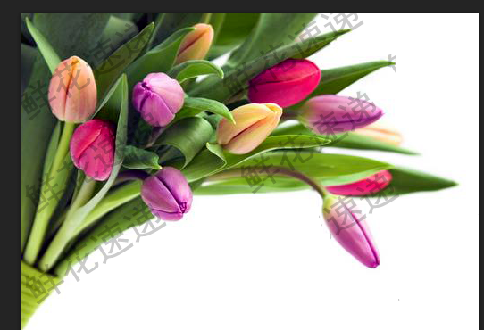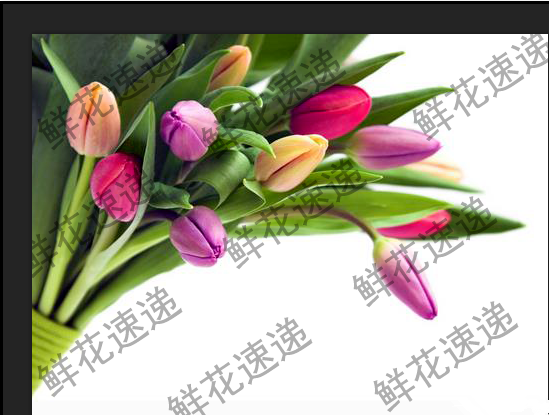如下图,PS操作界面中已有一张图片,图片中铺满了“鲜花速递”这四个字的水印,现在要把水印全部去除掉。