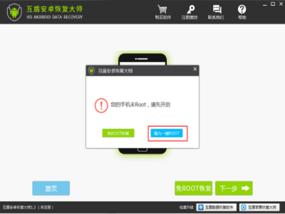 想要通过“一键恢复”模式找回手机数据,需要先ROOT手机,这样软件才可以通过读取手机数据库,进而找回数据。
