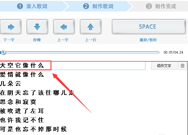 9、接下来,在歌曲和键盘下对歌词,一字一字调整。