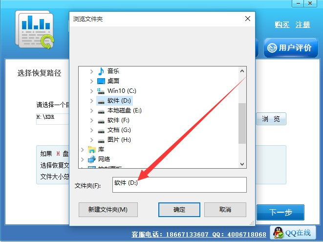 5、选择要恢复文件的储存位置。软件切换界面后,请点击“浏览”按钮,给格式化U盘中恢复的数据选择一个储存位置,这里可以储存在电脑,或是提前准备一个容量足够的储存媒介,然后点击“下一步”按钮进入数据恢复状态,恢复格式化U盘数据。