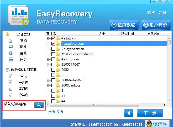 3、扫描并找到要恢复的文件。我们可以在软件界面中查看到扫描到所有内容,这里可以在界面左侧按照路径找到要恢复文件,也可以按照文件的类型或是名称进行搜索,找到要恢复文件。