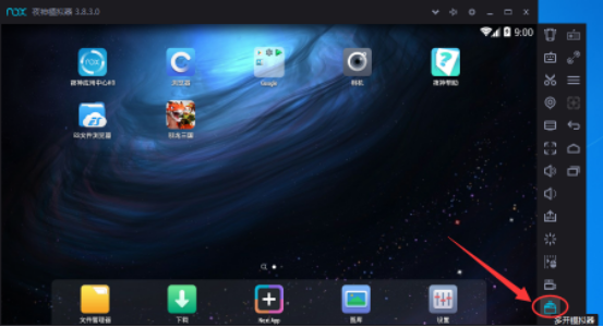 4、之后就可以在夜神安卓模拟器右侧的功能列表中看到“多开模拟器”功能了;