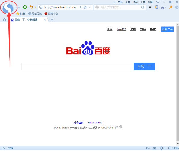 打开搜狗浏览器,然后点击其左上角的搜狗标志,如下图: