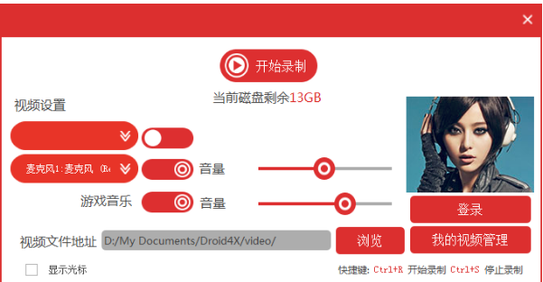 2、打开“视频录制”后可以先设置一下麦克风或者游戏的音量,以及视频的保存位置等;