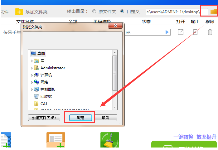 3、文件添加之后,用户可以点击右上角的文件夹图标,修改文件需要存储的位置。