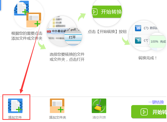 2、接下来需要点击界面下方的“添加文件”按钮,将需要进行提取操作的PDF文件添加到软件界面当中。
