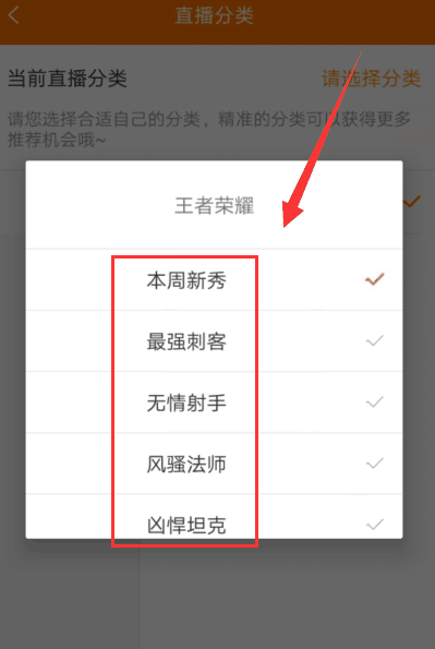 5、接着我们从王者荣耀的直播类型中选择一个,小编选择“本周新秀”,如图所示。