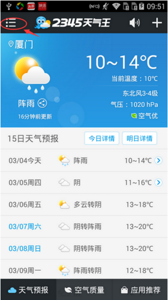 2345天气王是一款查询天气预报的手机应用,会给我们的生活出行带来便利。你在出门之前,可以用2345天气王提前设置好天气播报,在出门之前提醒你,下面来看具体的设置方法。