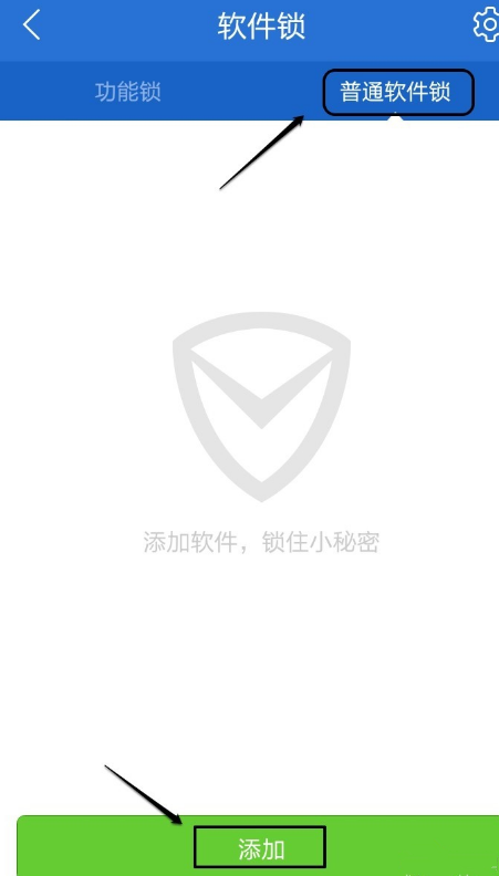软件锁中选择这里的普通软件锁,然后选择下方的添加。如图所示