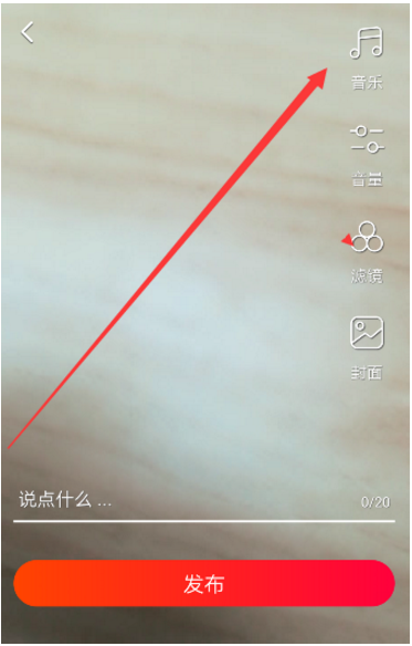 2、接着拍摄一段视频,然后进入编辑页面,选择右上角的【音乐】;