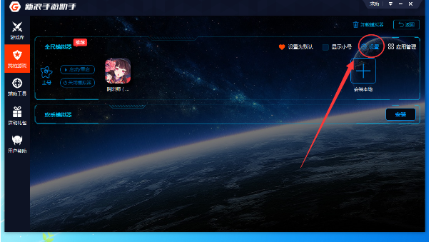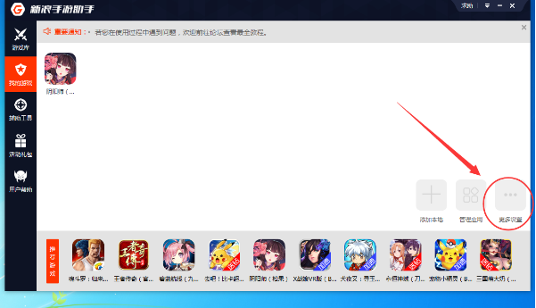 1、首先在电脑中打开新浪手游助手,然后在其“我的游戏”界面中找到“更多设置”;