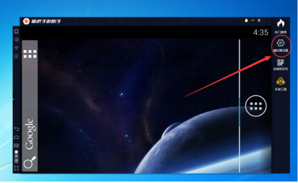 2、在新浪手游模拟器界面打开“模拟器设置”,接着在弹出的窗口中就可以看到模拟器分辨率的设置功能了,同样的设置完毕后重启模拟器即可。