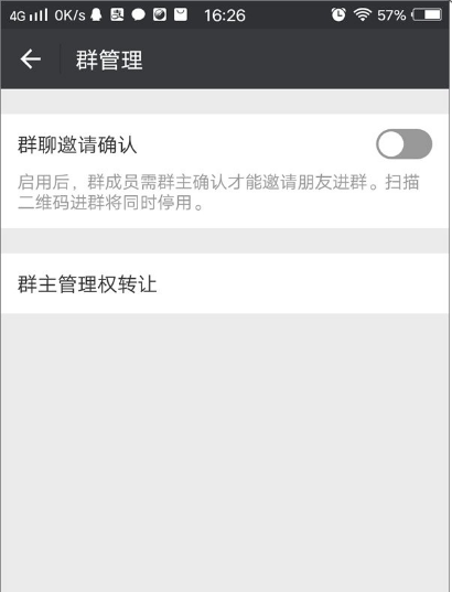 4、在群管理界面,点击“群聊天邀请确认后面的按扭,由灰色变为绿色就设置成功了。