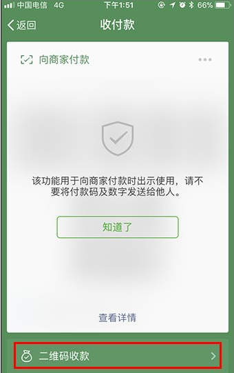 2、点击下面的“二维码收款”,