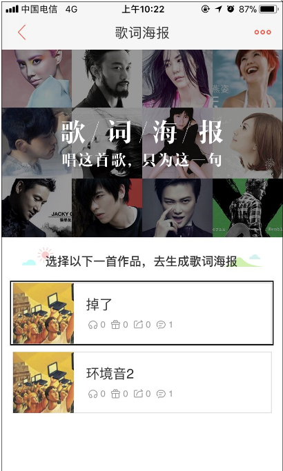 唱吧生成歌词海报的方法