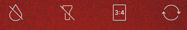 下图所示的四个按钮功能分别是:切换前后置摄像头、打开闪光灯、改变图片比例、径向模糊。