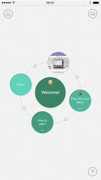 一个是导图展示排布的形式,另一个是支持添加条目的类型。主流的思维导图应用一般是框图、树状图的形式,Mindly则采用了如同星系分布一样的圆形,动态效果让人感到一定的新鲜感。