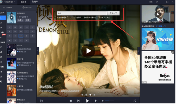 1、打开百度影音播放器,在搜索框中输入想要下载的剧集名称,点击搜索;
