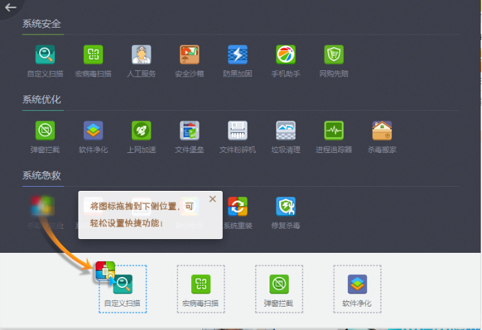 杀毒360软件不是只能进行基本的扫描杀毒点击进入软件“功能大全”,内有“系统安全”、“系统优化”和“系统急救”等安全功能。