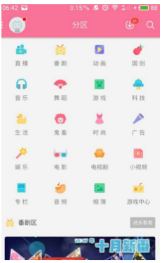 1、打开哔哩哔哩动画首页,点击分区按钮;