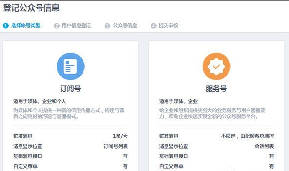 第二步,选择公众平台的类型,分类订阅号和服务号;