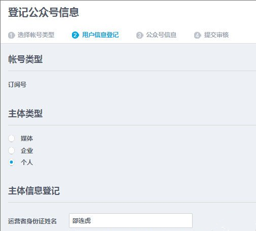 第三步,登录公众号信息,写上运营者姓名;