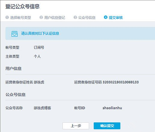 第六步,确认下信息,如果没有错误请提交审核;