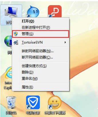 1、右击计算机(我的电脑),点击管理