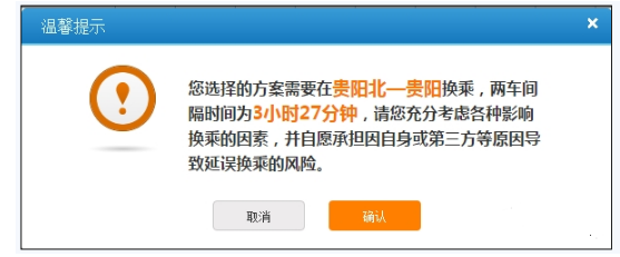 2、需要注意的是,系统展示途中换乘一次的部分列车余票信息,购票时需要充分考虑各种影响换乘的因素,并自愿承担因自身或第三方等原因导致延误换乘的风险,用户需要根据实际情况,选择是否购票,购票后合理安排时间,及时换乘。
