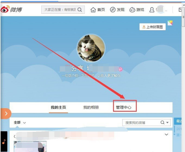 2、打开微博主页后,点击管理中心按钮,打开管理中心,