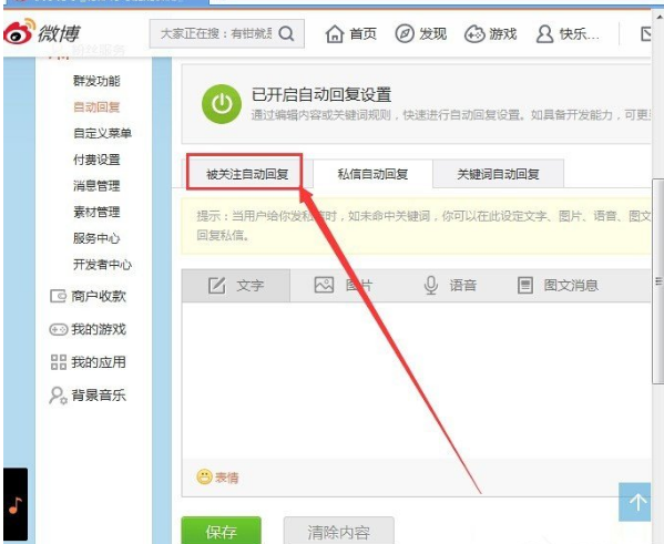 新浪微博如何设置被请关注自动回复?