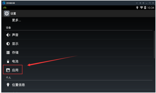 1、打开游信模拟器的“设置”,然后在“设置”界面打开“应用”;