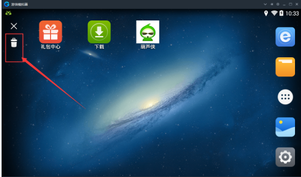 1、首先打开游信安卓模拟器,然后在其界面找到想要删除的应用,长按它后在模拟器界面左侧会出现一个垃圾桶的图标,如下图所示: