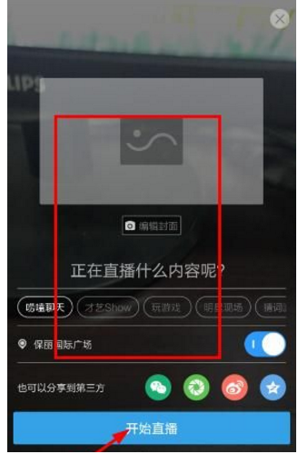 2、选择编辑封面,填写直播标题,点击“开始直播”按钮