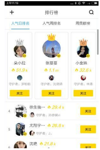 2、在排行榜界面,为你进行人气排名整理,点击请关注按钮就可以请关注主播的哟