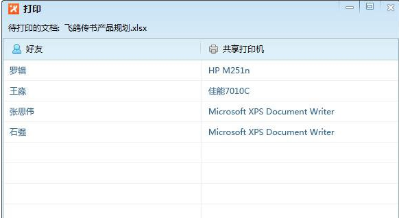 2、打开需要打印的文档或图片,选择 打印 -》 飞鸽网络打印机,选择你要选择的好友或打印机进行打印,也可以预览需要打印的文件。