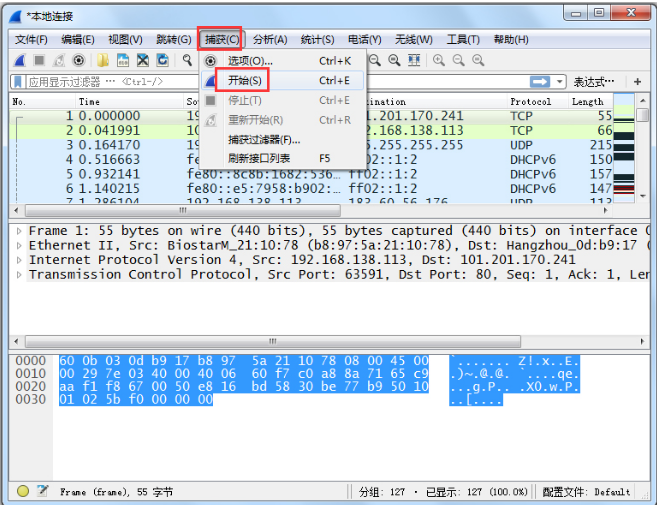 如果没有一个正确的位置,启动Wireshark后会花费很长的时间捕获一些与自己无关的数据。