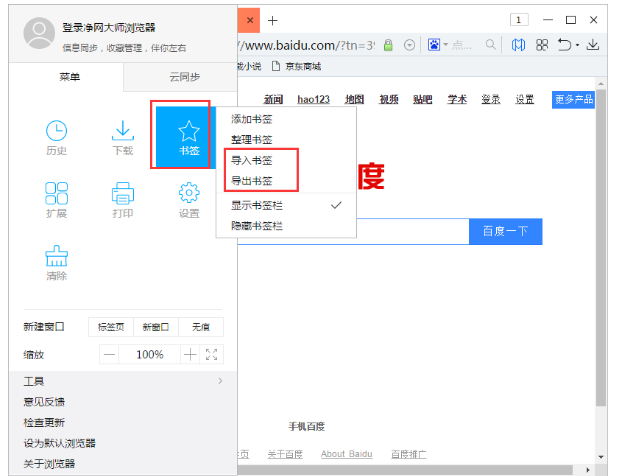 净网大师浏览器导入导出收藏夹的方法