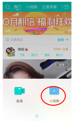 2、选择小视频,就可以开始在映客上拍小视频啦。