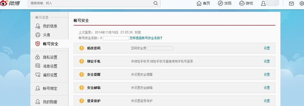 3、点击“帐号安全”后,就进入到帐号安全设置页面。