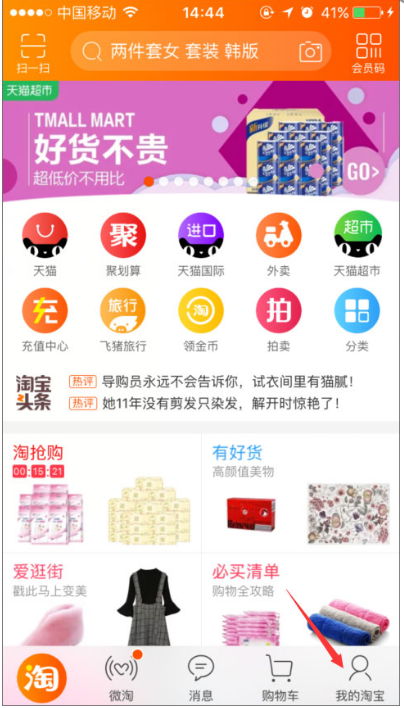 1、登录手机淘宝客户端,点击“我的淘宝”;