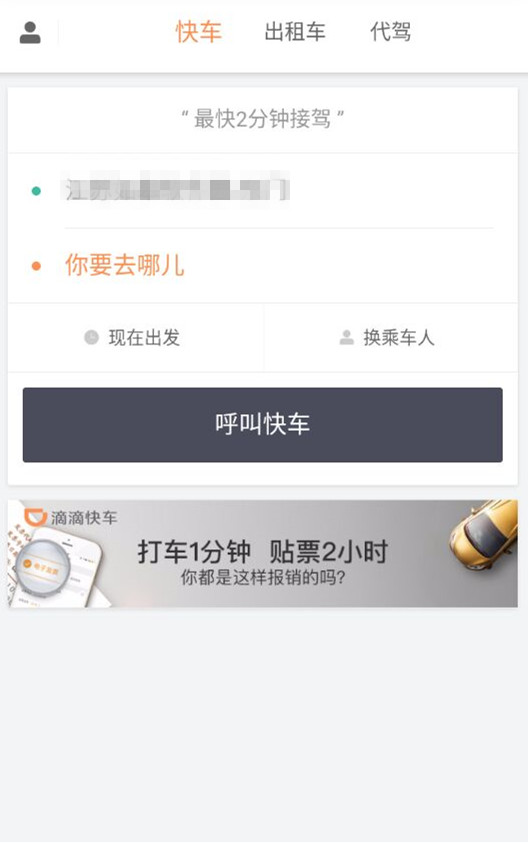 3、会出现下图界面,选择你要前往的目的地,可以选择快传、出租车、代驾等方式。