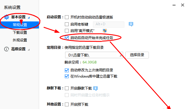 如何设置迅雷极速版启动后自行开始未完成任务?