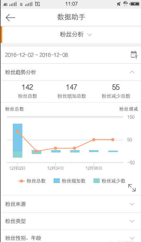 5、关于粉丝分析,这里可以查到粉丝数量、粉丝来源、粉丝类型、粉丝增加减少数等等。