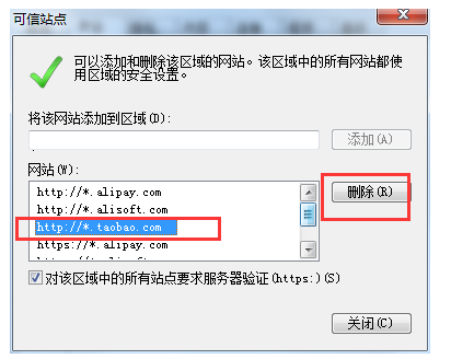 1、首先我们在IE浏览器中打开该网站,如果也有问题,那么就在在IE浏览器的“菜单→工具→internet选项→安全”中将安全等级设置成默认的中等,接着在“可信站点”中打开“站点”,最后删除淘宝的网址就可以了;