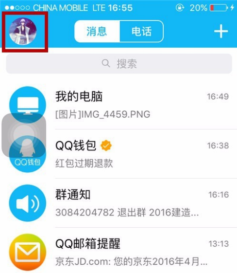1、打开手机QQ,登陆账号,点击左上角的QQ头像,